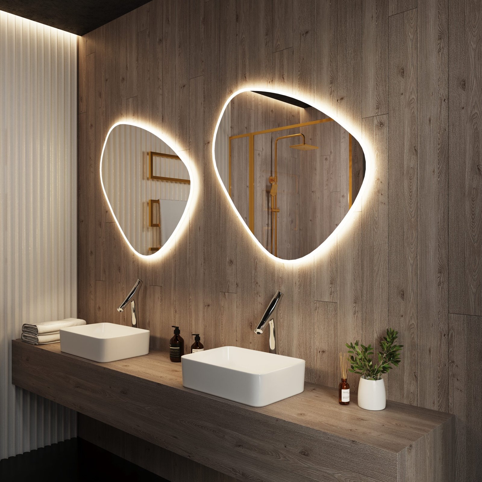Anti-fog technology activates with motion sensors, paired with dimmable LEDs (3000K-6000K color temps). 95 CRI lighting ensures true-color reflection. Optional features: Bluetooth speakers, USB ports, and magnification panels. IP44 rated for wet environments.